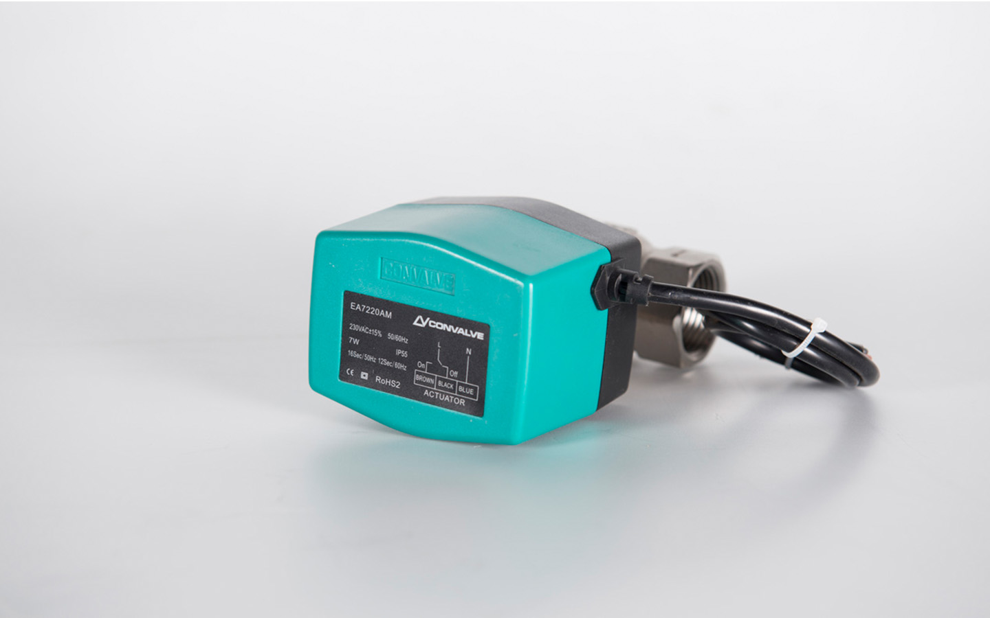 Convalve motorized ball valve is motor-operated by a type of EA7220A, EA7220AM, EA7024D and EA7024DM actuator. The actuator is controlled by a modulating on/off or 3-point control system and move the ball of the valve, to the opening position detected by the control signal.