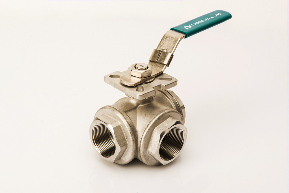 Stainless steel 3-way ball valves are typically used to control water, air, oil, vacuum and other media compatible with the materials of construc- tion. Often used as a diverter, selector or mixing valve with a variety of flow path options through the valve. Unique four ball seat design allows for full pressure at any port. Air or electric actuators can be direct mounted using standard ISO5211 mounting pad, eliminating the need for extra mounting brackets and couplings. Suitable for vacuum service to 736 mmHg (29inHg)